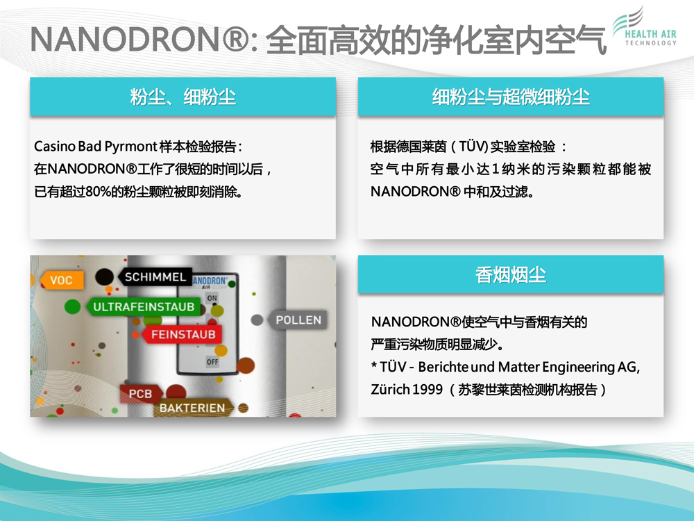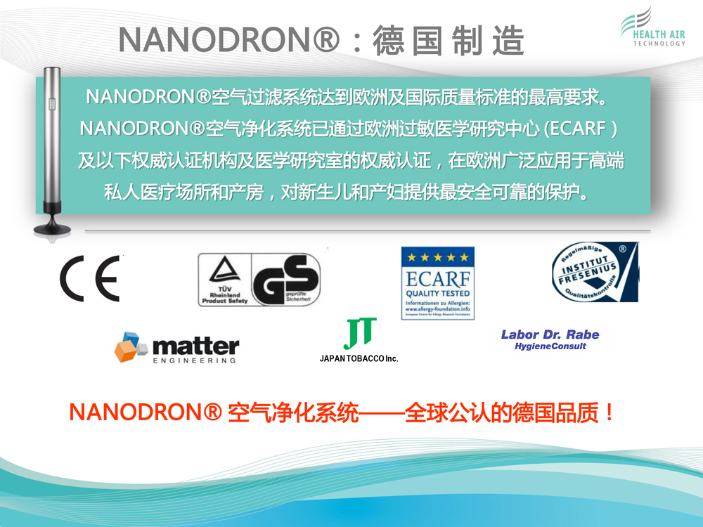 HEALTH AIR TECHNOLOGY GmbH(健康空氣技術(shù)有限公司)致力于獨(dú)特的高科技空氣凈化系統(tǒng)NANODRON?的開發(fā)、生產(chǎn)和銷售。 公司總部及研發(fā)與生產(chǎn)部門位于德國普福爾茨海姆。過去12年來,為了保證在全球范圍內(nèi)維持公司特有的質(zhì)量標(biāo)準(zhǔn)與技術(shù)規(guī)格,我們建立了一個銷售...[查看更多]