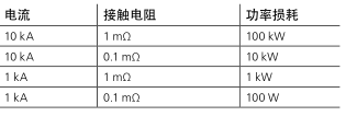 10 kA時0.1 mΩ電阻使功率損耗達到10 kW。一個點上有這樣的功率損耗在必然導致溫度的升高,造成過熱和前期故障